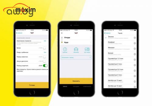 Основные услуги, доступные в приложение такси Maxim: